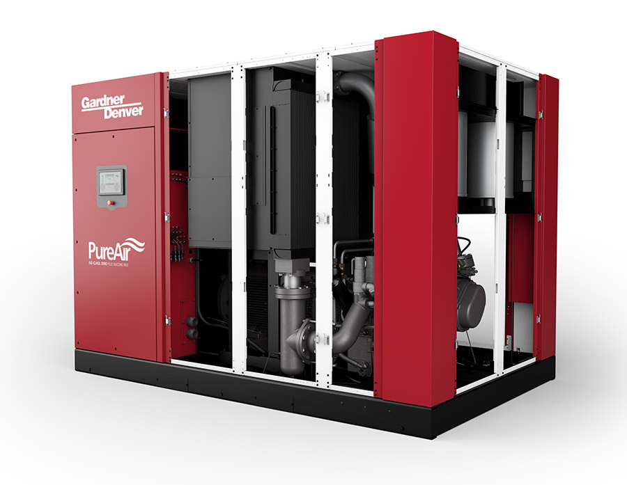Versiones de velocidad fija y regulada en el amplio rango de 200 a 355 kW, rango de presión 4 a 10 bar, caudal 11,5 a 53,3 m³/min